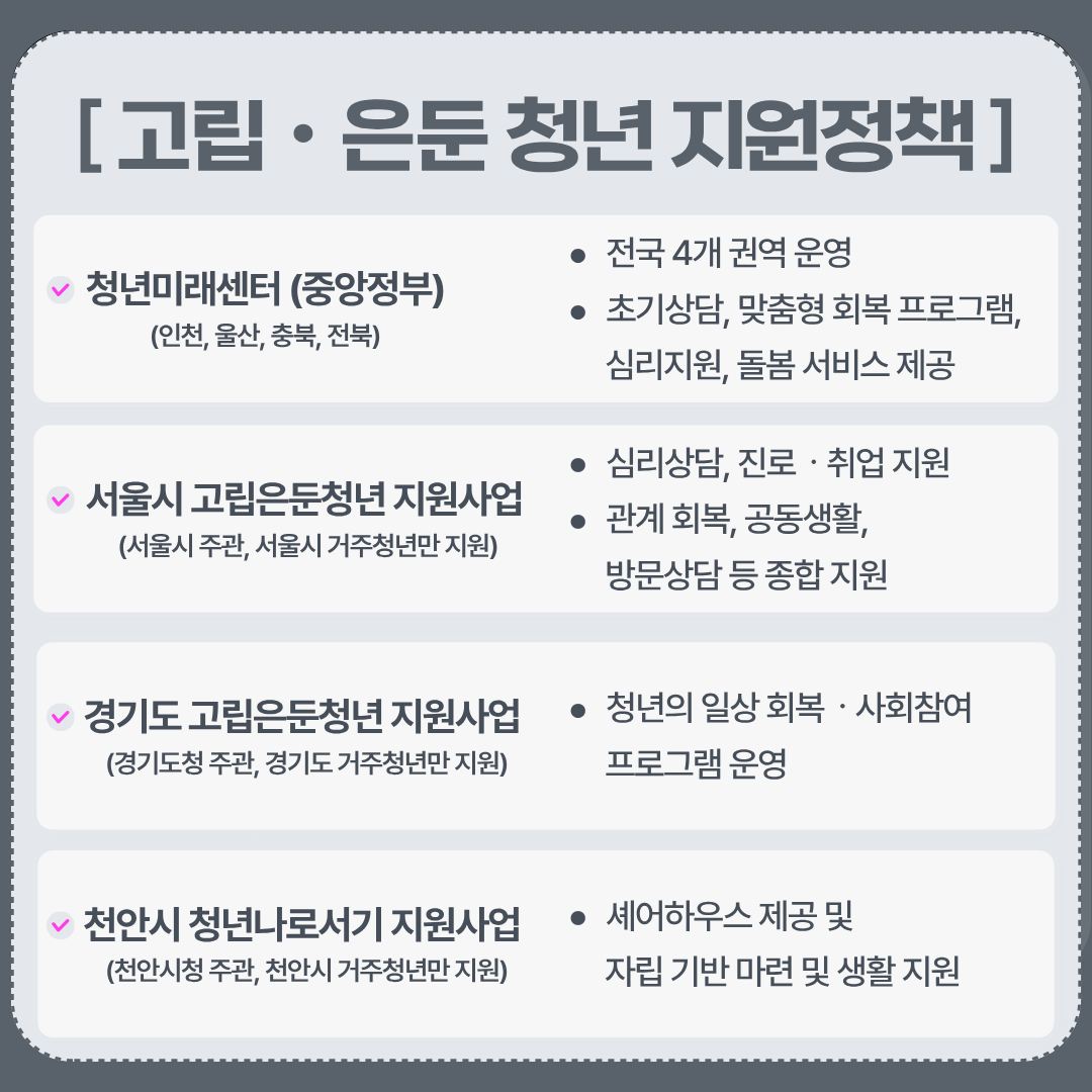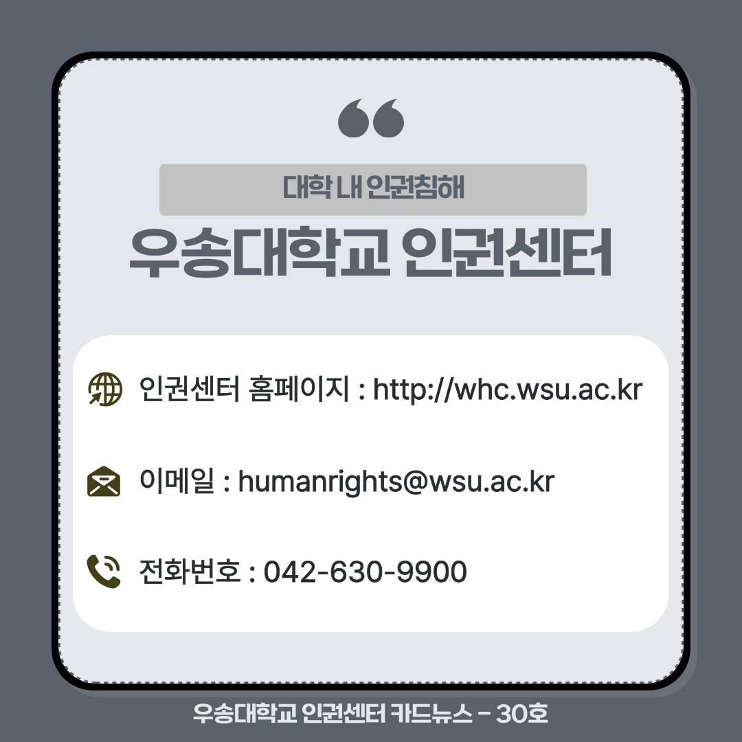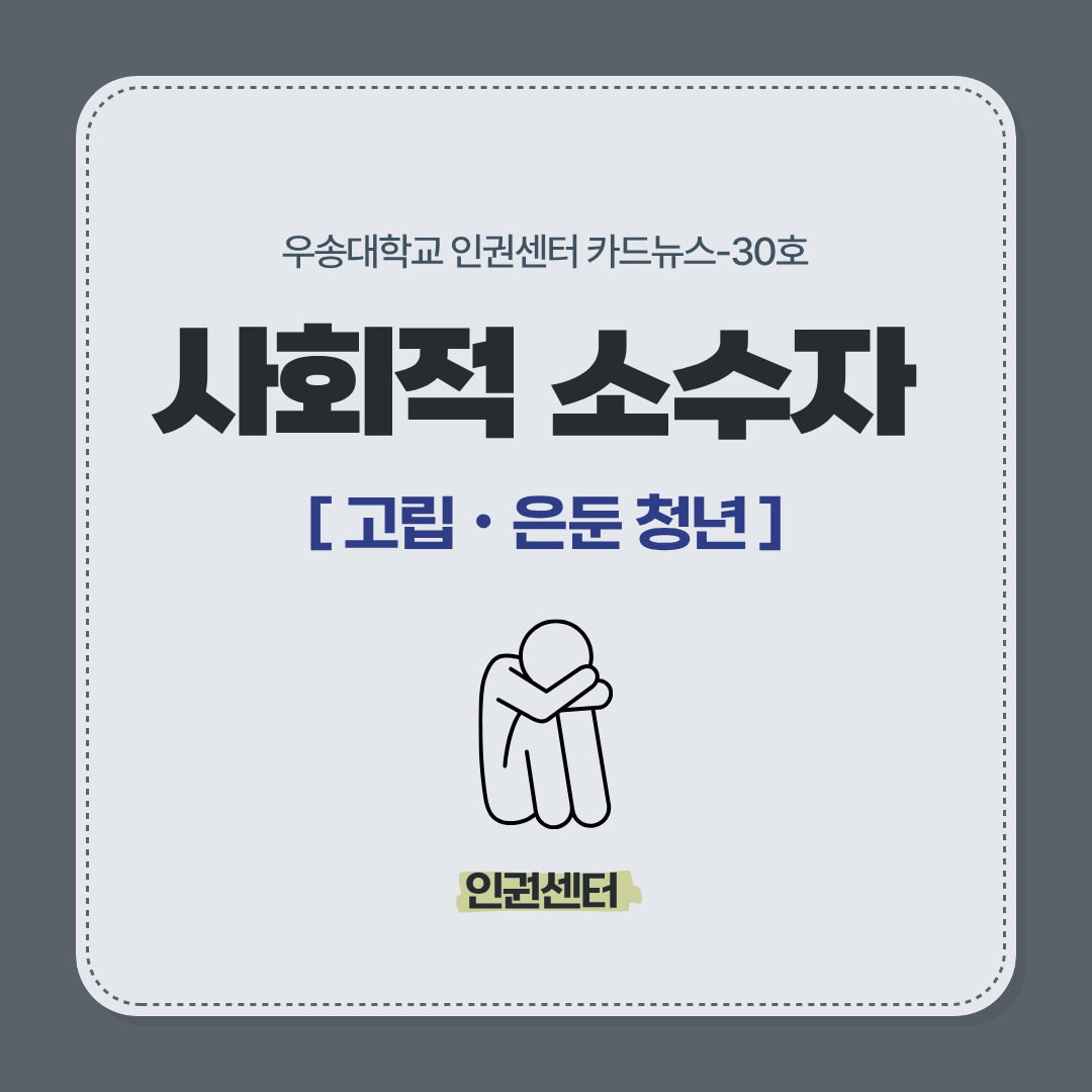 커뮤니티 공지사항 학과뉴스 공모전정보 학과뉴스Home커뮤니티학과뉴스 【인권센터】 인권센터 카드뉴스 30호 - 사회적 소수자(고립ㆍ은둔 청년편) 작성자 : 학과관리자 | 작성일 : 2025.10.24 | 조회수 : 37 첨부파일 [87]1.png [71]2.png [62]3.png [51]4.png [41]5.png [35]6.png [25]7.png [20]8.png [15]9.png [13]10.png [20]11.png [11]12.png [9]13.png 목록 이전글 【학생상담센터】 11월 홍보포스터 다음글 【취업지원센터】 2025년 10월호 우송취업 뉴스레터